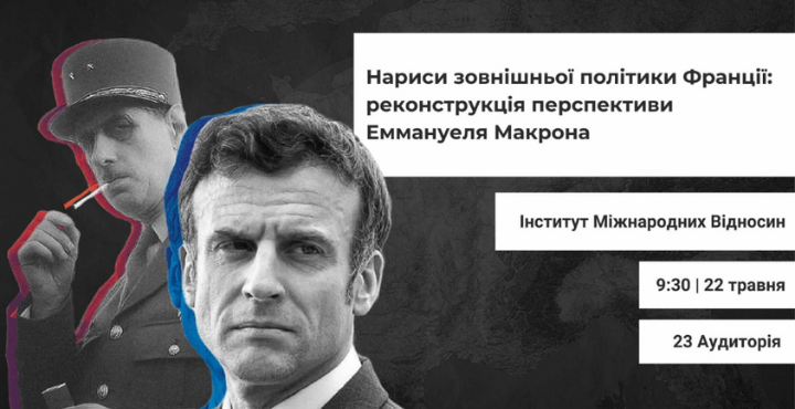 On May 22, at 9:30, a colloquium on the topic "Essays on French foreign policy: reconstruction of Emmanuel Macron's perspective" will be held in the walls of the Educational and Scientific Institute of International Relations in the 23rd auditorium.